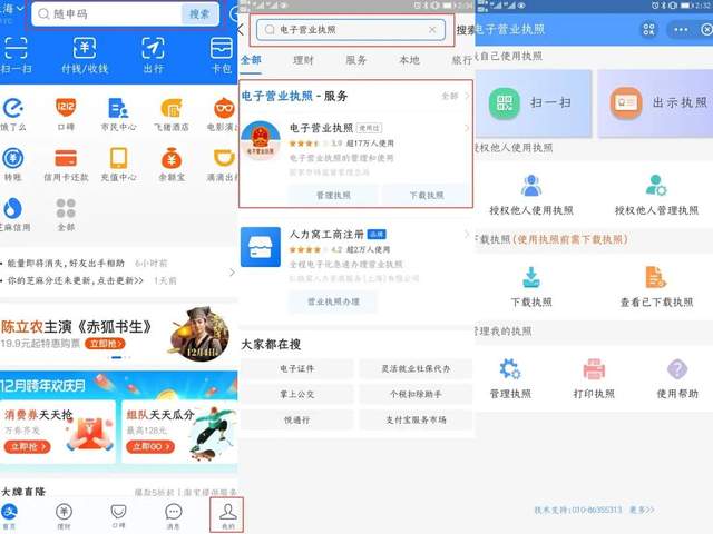 使用支付宝小程序下载“电子营业执照”。操作步骤: