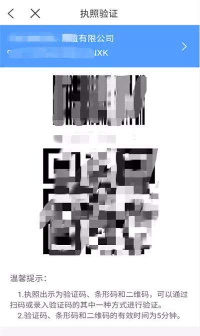 线下办理业务时,不必携带纸质营业执照,点击“出示执照”,工作人员通过扫描条形码、二维码,就能收到电子营业执照的信息。
