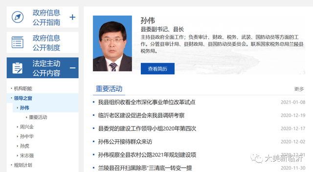 1月17日,山东省委组织部发布干部任前公示公告,孙伟,男,1969年12月生,中央党校研究生学历,中共党员。现任兰陵县委副书记、县长、一级调研员,拟任县(市、区)委书记。
