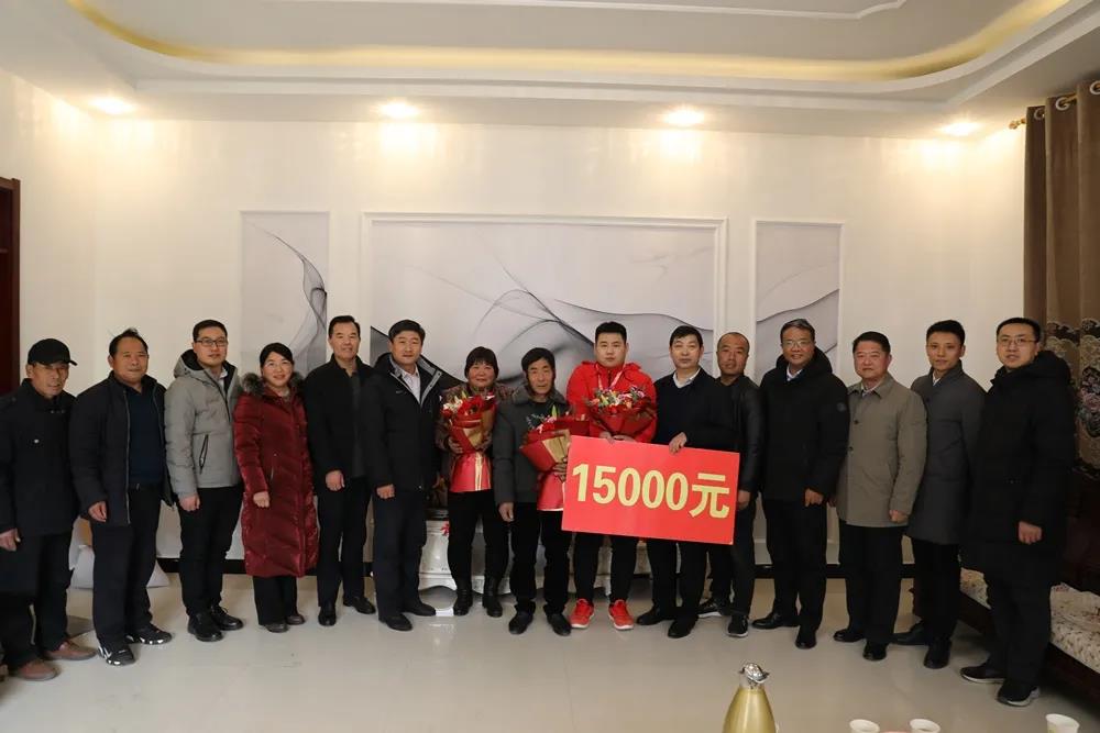 2月2日,在新春佳节即将来临之际,山东交通技师学院党委副书记解耿品,副院长赵军辉、郝风伦带领相关部门负责人等赴兰陵县西大埠村看望慰问了在第一届全国技能大赛中荣获银牌的优秀选手张风利及其家人,带去了学院党委的祝贺和新春祝福。