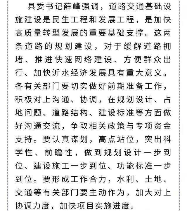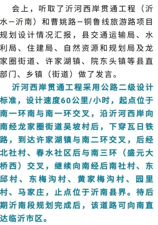 2月1日,沂河西岸贯通工程(沂水—沂南)和曹姚路—铜鲁线旅游路规划论证会议召开。