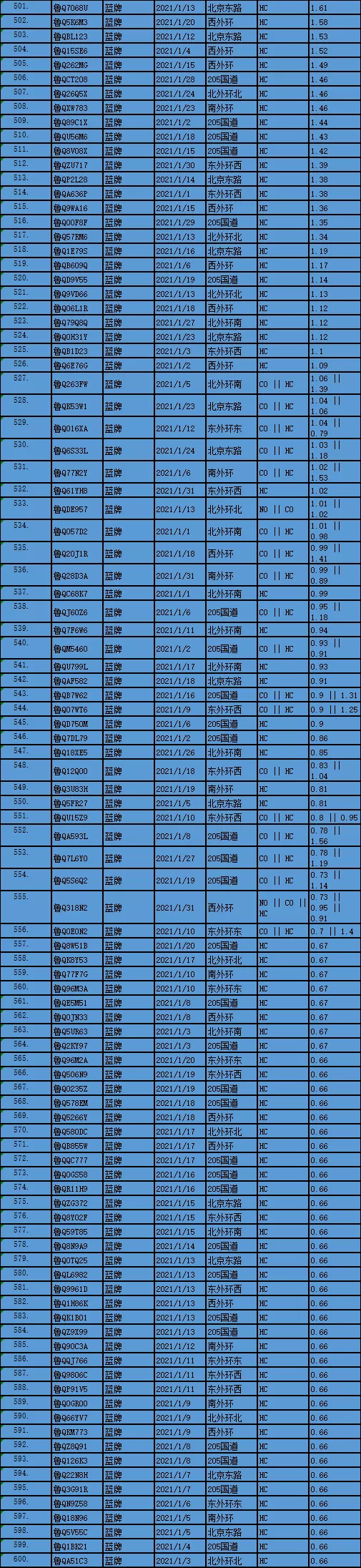 根据国家、省、市柴油货车污染治理攻坚方案的有关规定要求,现将2021年1月份遥感监测筛查超标车辆信息予以告知,请相关车主及时对所属车辆维修维护。
