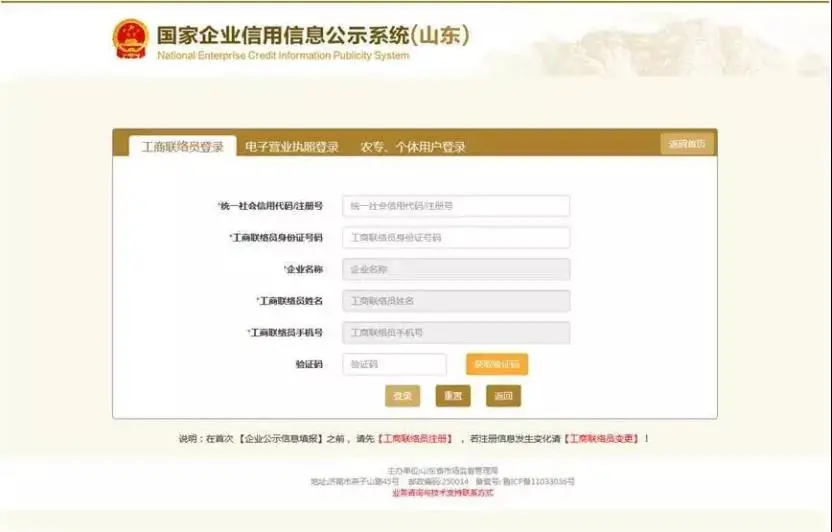 注:选择工商联络员方式登录的企业,在首次填报前,请先进行“联络员注册”,若备案信息发生变化,请进行“联络员变更”。