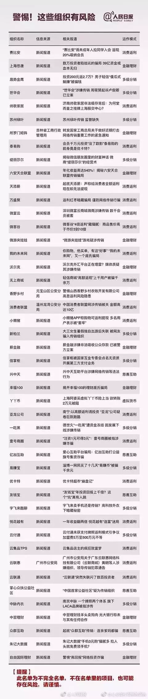 归纳发布以下涉及传销名单