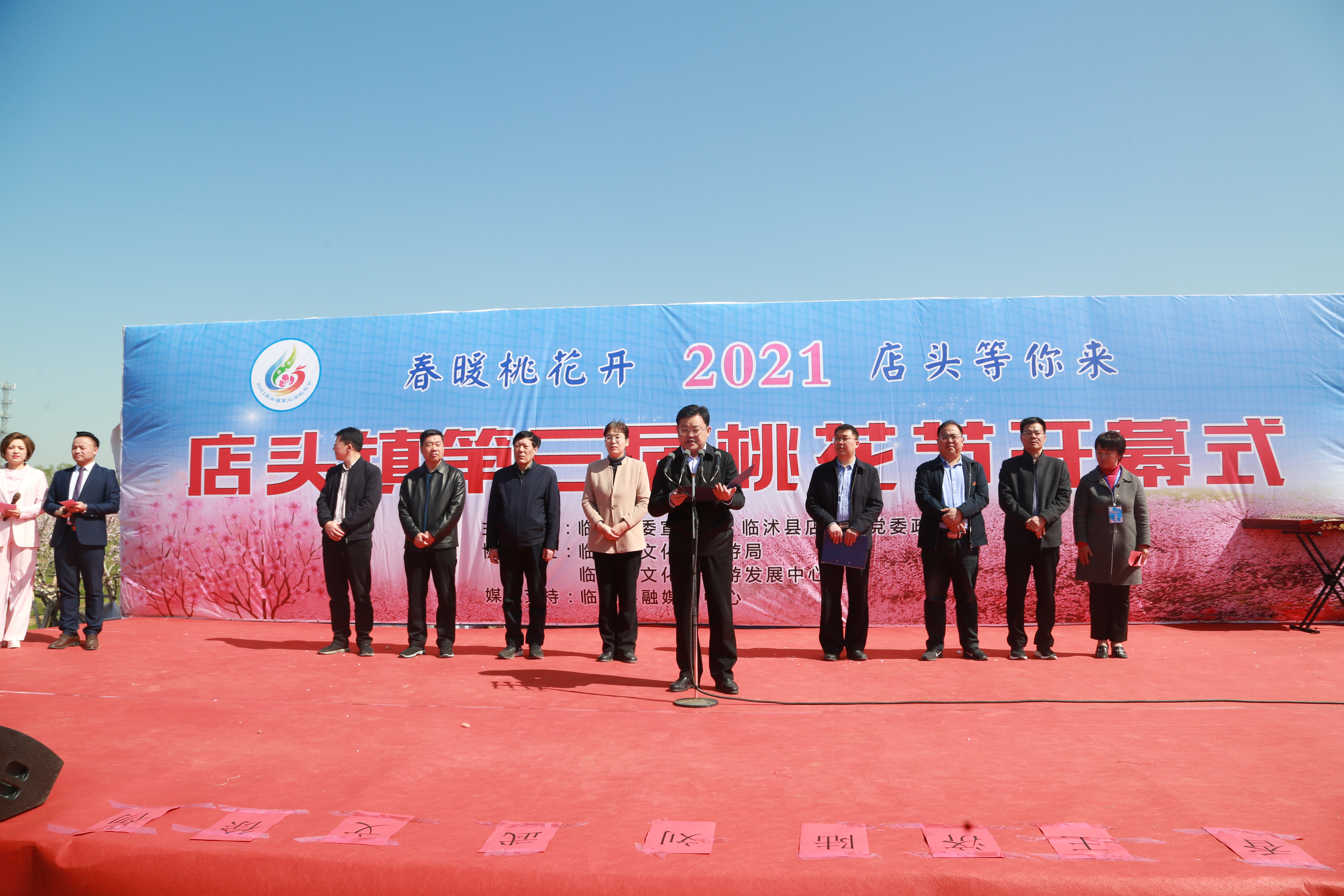 陆永春首先作致辞,他说,近年来,临沭县推动乡村振兴旅游集中连片打造,实现“红色文旅+”工程,推出“滨海烽火”“沂蒙初心”“难忘岁月”三条精品红色文化旅游路线,先后举办柳编旅游文化博览会、板栗采摘节、粉条节、槐花节、百合节、蓝莓文化节等重点文化旅游节会,极大提升了临沭旅游形象,叫响了临沭品牌。这次店头镇桃花节的举办,展示了店头一年来发展的丰硕成果,迈出了建设和美幸福店头的坚实步伐。
