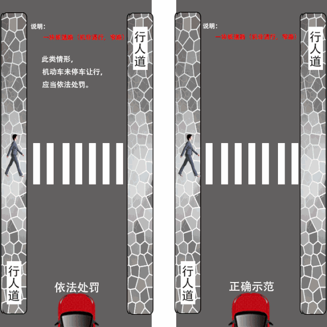 当车辆行经人行横道,行人步入斑马线时,最靠近行人车道内的车辆必须礼让行人;行人开始通过斑马线,所在车道车辆和下一车道车辆必须让行;行人到达中央绿化隔离带或双黄线,下一车道车辆必须让行。