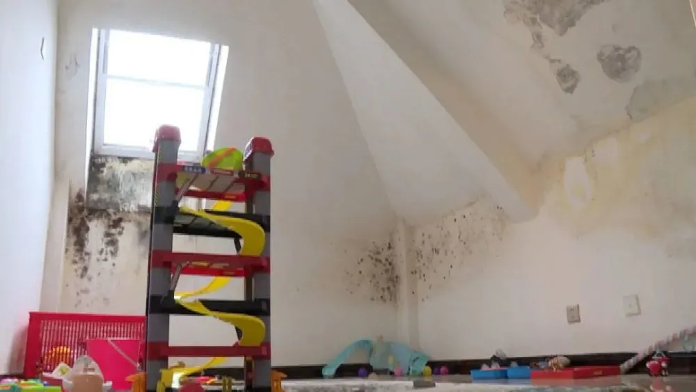 临沂的张先生一家,居住于莒南县西一路上的鼎和财富公馆小区,虽然从交房入住至今也就五年时间,可如今房间内四处可见连片的黑色发霉痕迹、墙皮也出现了脱落。