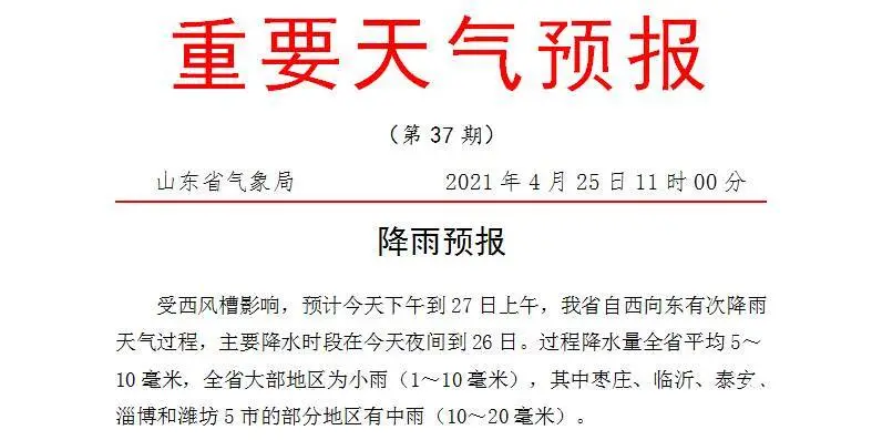 25日夜间到26日白天,多云转阴有小到中雨,偏东风3级左右,气温12~16℃;