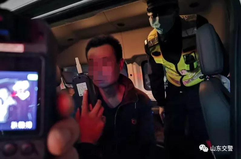 事发日晚8点57分,滕州交警大队值勤三中队组织民警在平行路与河阳路路口南侧设卡开展夜查行动,发现一辆重型半挂车形迹可疑。当民警对该车驾驶人刘某进行询问时,对方拒不出示证件,试图逃避检查,民警发现其身上有明显酒味,有酒驾的嫌疑,遂立即使用呼气式酒精检测仪对刘某进行检测,发现刘某体内酒精含量为58mg/100ml,达到酒驾标准。