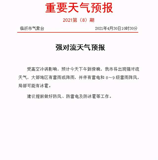 30日白天到夜间,多云间阴,大部地区有雷雨或阵雨,偏东风转偏北风3~4级,雷雨地区雷雨时阵风7~8级,气温23~7℃;