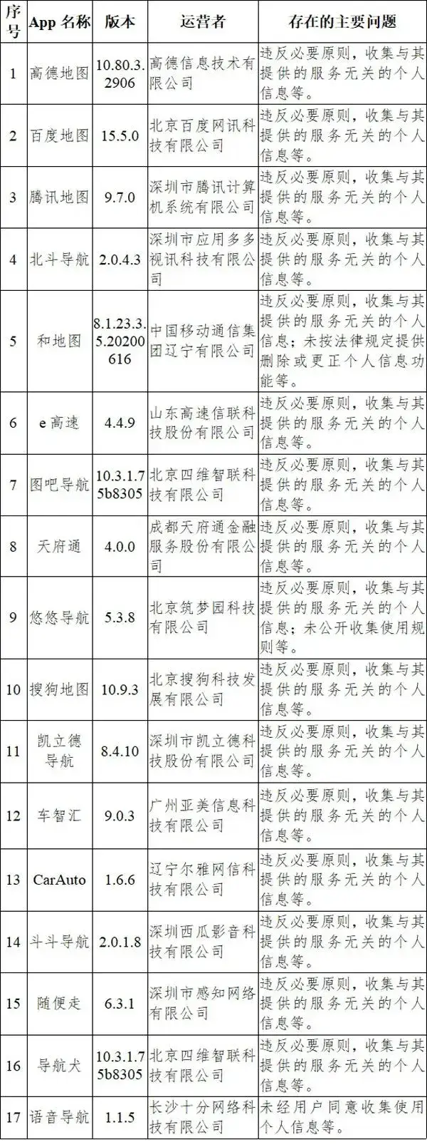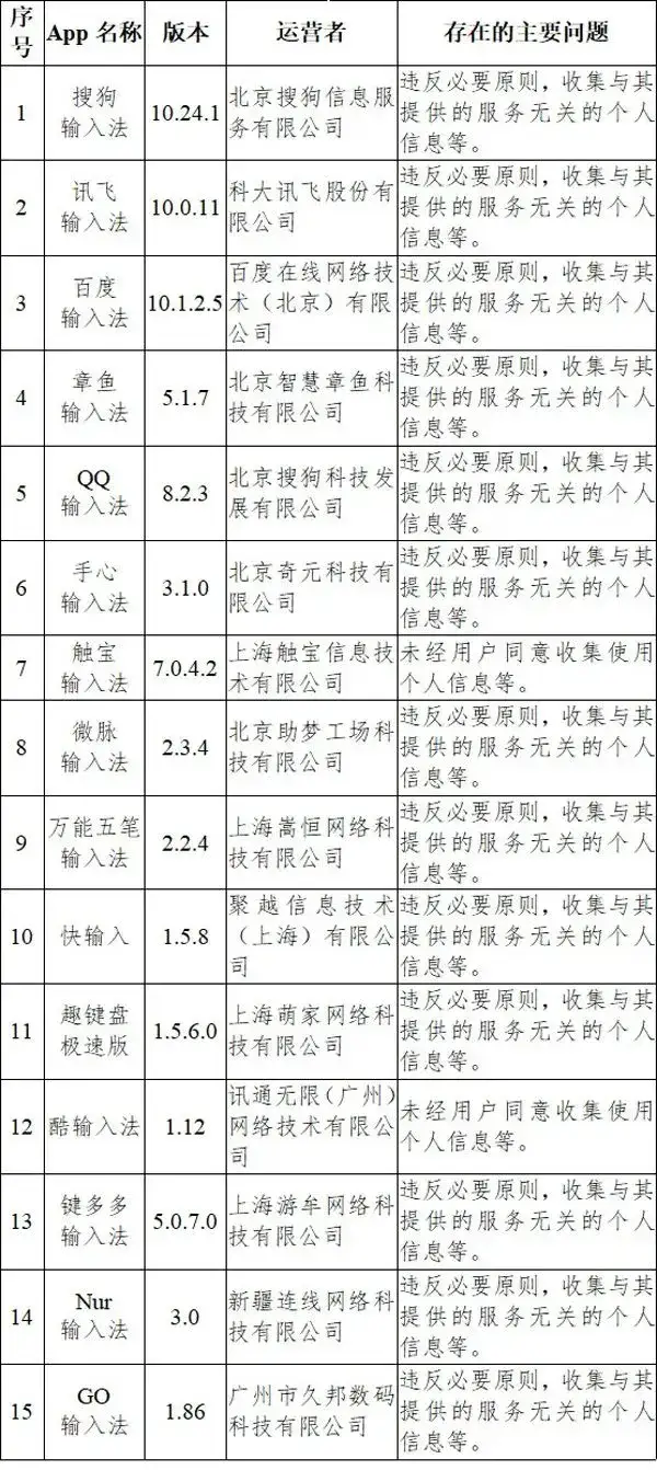 国家网信办5月1日通报,依据法律和有关规定,对输入法、地图导航等常见类型公众大量使用的部分App的个人信息收集使用情况进行检测,发现搜狗输入法、讯飞输入法、高德地图、百度地图等33款App违法违规收集使用个人信息。