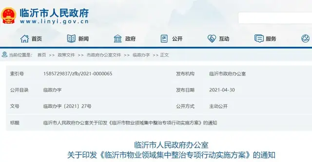 《临沂市物业领域集中整治专项行动实施方案》已经市政府第92次常务会议研究通过,现印发给你们,请认真抓好贯彻落实。
