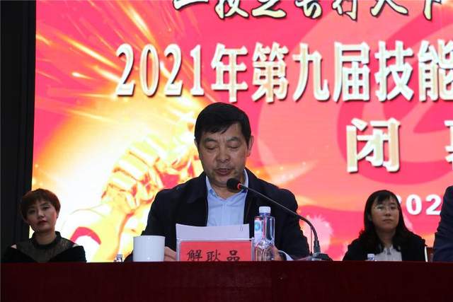 闭幕式上,学院纪委书记陈作兴宣读了《关于对2020年度参加职业技能竞赛获奖选手和指导教师表彰奖励的决定》;副院长赵军辉宣读了《关于对2021年第九届技能文化节暨技能文化周获奖选手进行表彰的决定》。教师代表赵向阳、企业参赛选手代表华盛中天李春江、学生代表李永坤分别作表态发言。