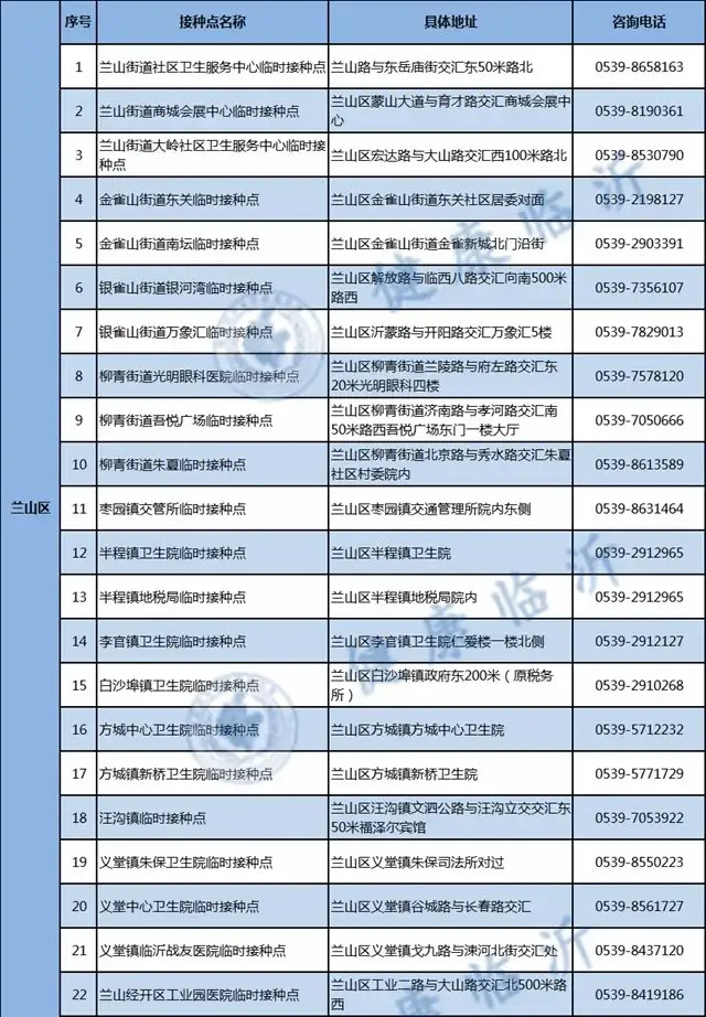 别急,这里有各县区新冠病毒疫苗接种点的信息以供参考,后期,将有更多临时接种点投入使用,届时将满足更多市民的接种需要。
