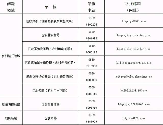 为方便群众参与监督和反映问题,现将各主责单位专项整治期间受理问题举报电话、举报邮箱(网站)公布如下: