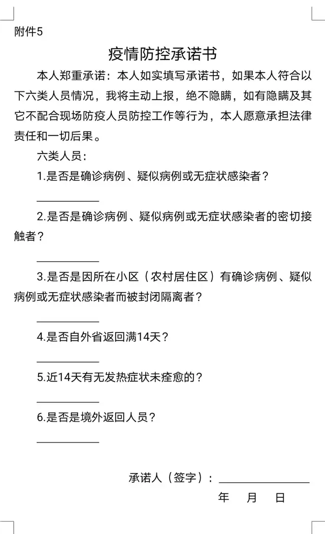附件5:疫情防控承诺书