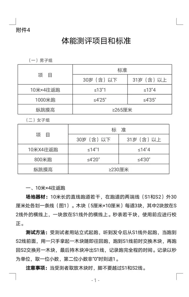 附件4:体能测评项目和标准