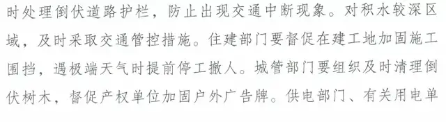 9.要对城市低洼易涝地区、地下商场、地下影剧院、下沉式广场、立交桥等,提前落实防洪排涝措施,提前组织人员转移避险,加强交通管控,及时发现和排除险情,保障城市正常运行和群众生命财产安全。