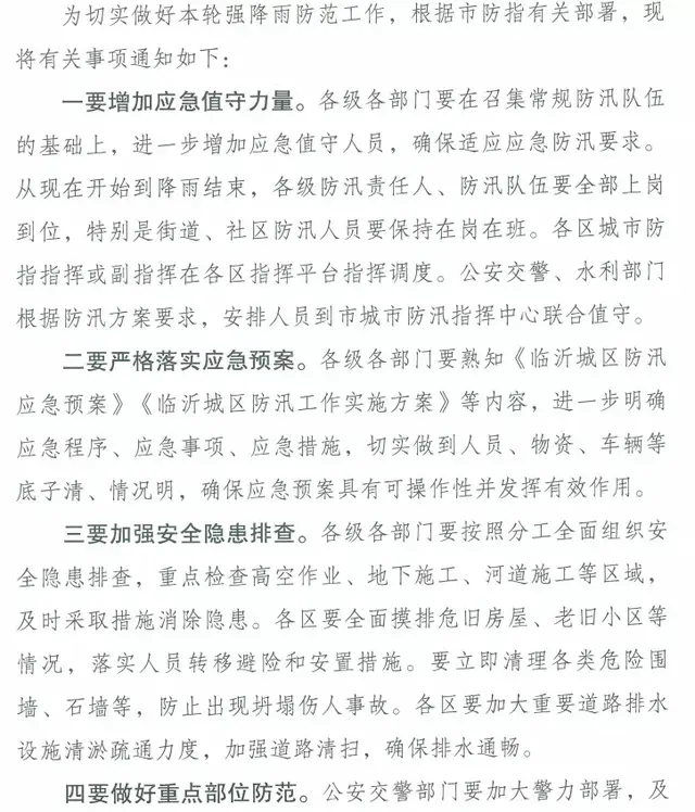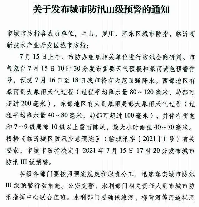 临沂市防汛抗旱指挥部办公室发布防汛重要提示