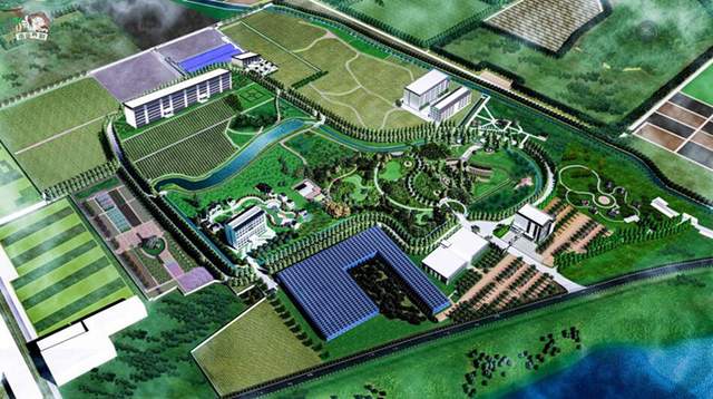 南亩春耕中医药文化科技园项目位于临沂市河东区汤河镇小程子河村,毗邻汤河国家湿地公园,由山东华夏高科农业科技发展有限公司投资2.6亿元建设,占地500亩。园区以人体五脏为喻,结合五行、五色、五育的内涵,以“五园四区三圃二心”功能划分,计划建成一个集中药资源保护、研究、开发,以及中医药文化科普、教育、传播于一体的中医药文化科技产业园。