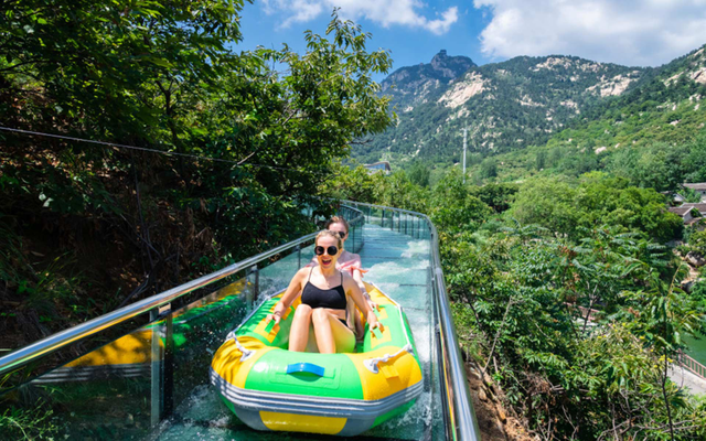 紧张刺激的-沂蒙山首条高空玻璃漂流