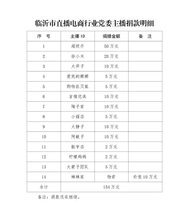 据不完全统计,倡议书发起不到24小时,徐小米、陶子家、大萌子、阿聪家、小丽店、阿萱家等头部主播以及顺和直播电商科技产业园等成员单位已累计捐款超过150万元。