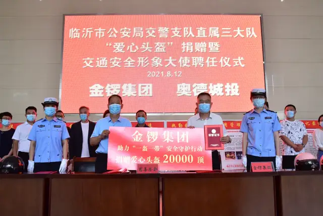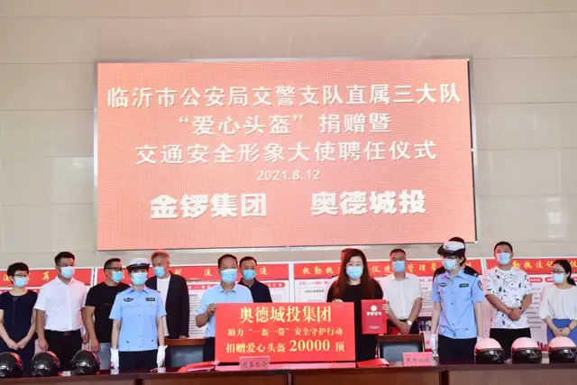 仪式上,金锣集团和奥德城投集团各向临沂市慈善总会捐赠20000顶“爱心头盔”,积极助力“一盔一带”安全守护行动。慈善总会副会长王连正分别与两家集团签订“爱心头盔”捐赠协议,并向他们颁发了荣誉证书。
