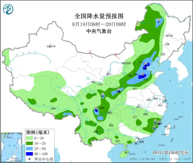 19日夜间到20日白天,阴有中雨局部大雨或暴雨并伴有雷电,偏南风3~4级,雷雨地区雷雨时阵风7~9级,气温22~26℃。