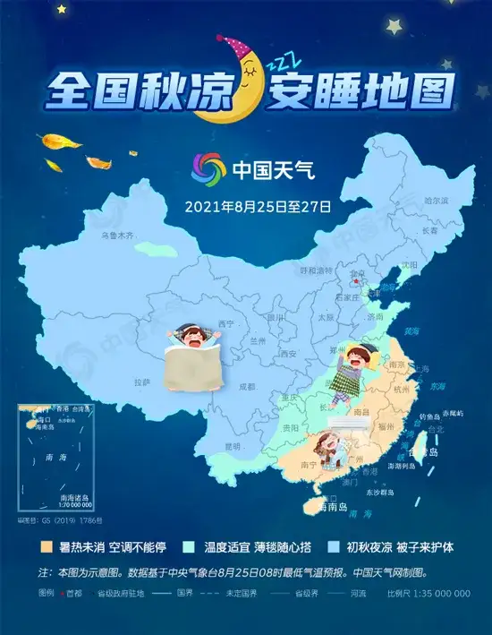 据中国天气网气象分析师石妍介绍,最近一周,南北方天气形成明显反差。南方秋老虎发威,江南、华南一带仍将被热浪“包围”,热如大暑,尤其华南,白天躲不过高温的“围攻”,夜晚也是分分钟被热醒的节奏,空调停不了;而在北方,东北、西北、华北北部夜间凉意十足,最低气温普遍不足20℃,晚上睡觉要换成盖被姿势了。