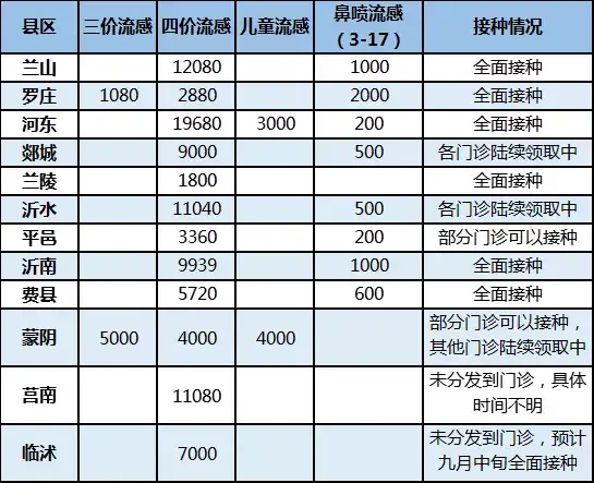 截至8月31日,临沂市各县区首批次流感疫苗已全部到货