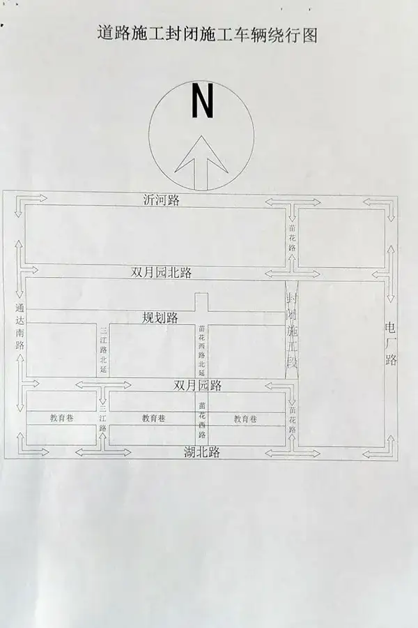 3、绕行路线:社会车辆选择绕行湖北路、通达南路、双月园路、双月园北路、电厂路。若因持续降雨等不可抗力因素造成的工期延后,道路封闭时间将相应顺延。