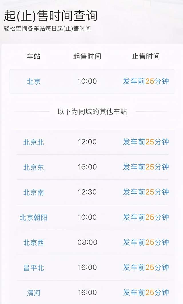 起售时间查询:不同车站的起售时间不同,一定要提前定好闹钟!打开铁路12306App,点击首页的更多推荐,找到起售时间图标,输入要查询的车站名和日期,就可以看到该车站的起售时间和止售时间。
