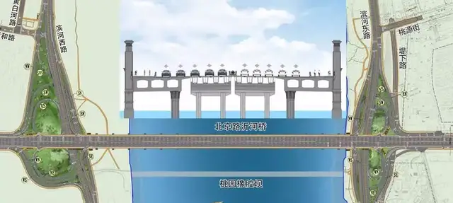 受百年一遇的洪水位限制,按照规划,北京路沂河桥老桥桥面标高需提升2米。