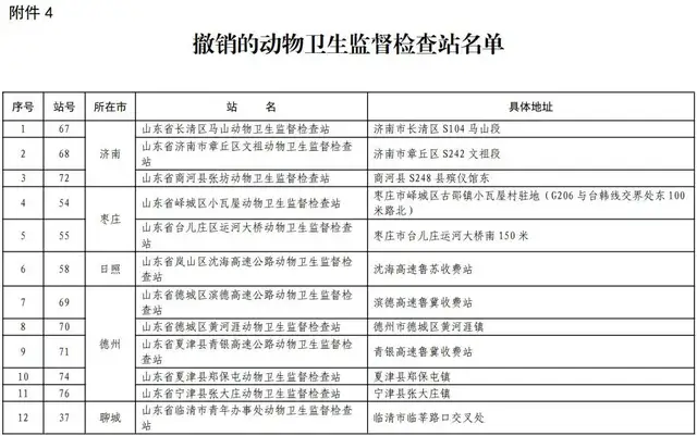 撤销的动物卫生监督检查站名单(点击下图可放大)