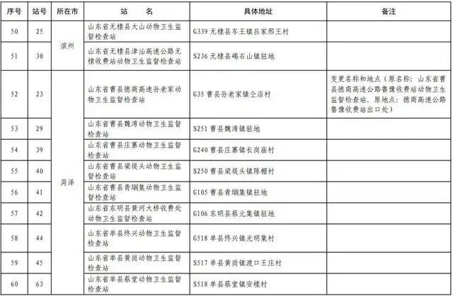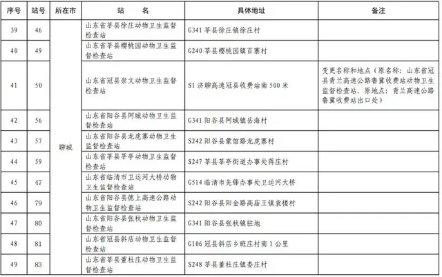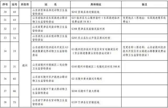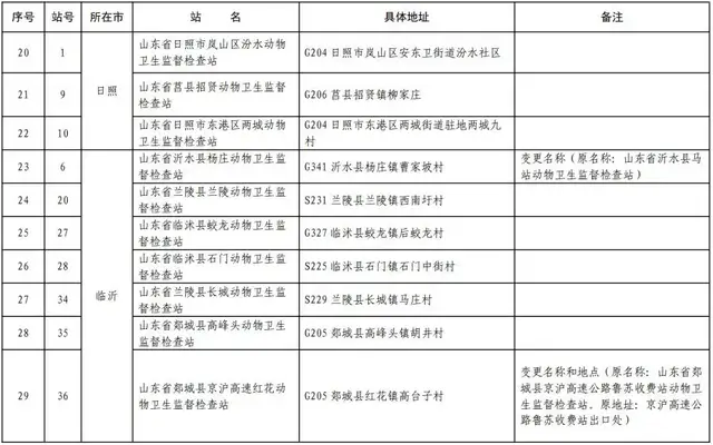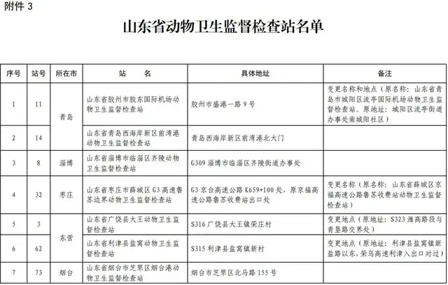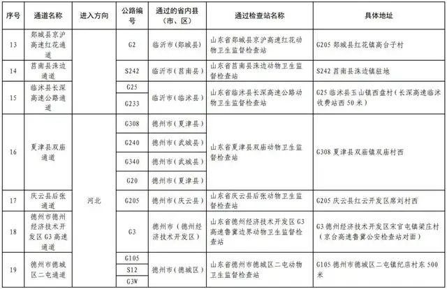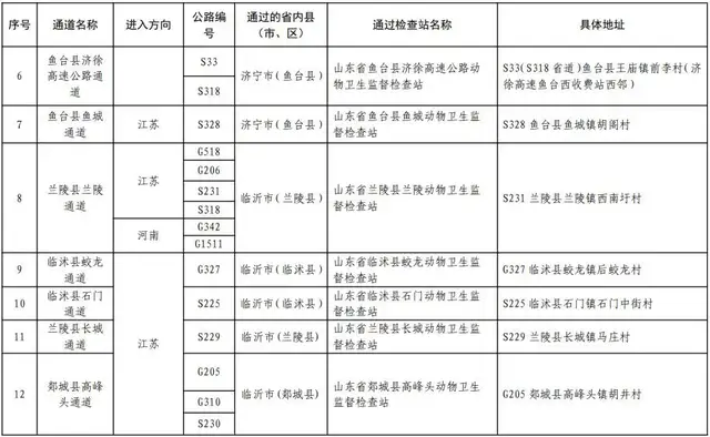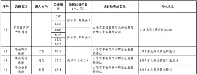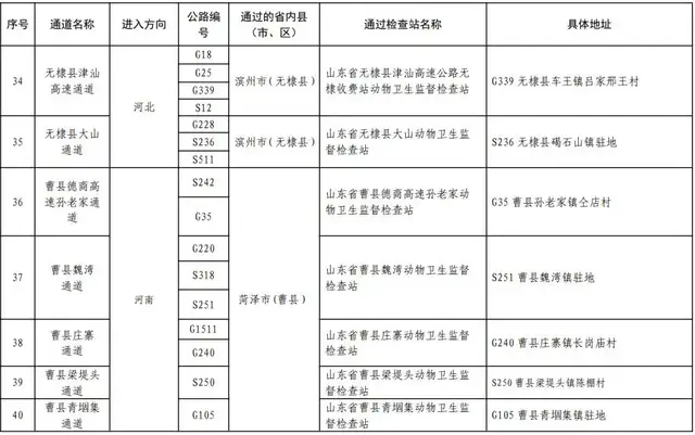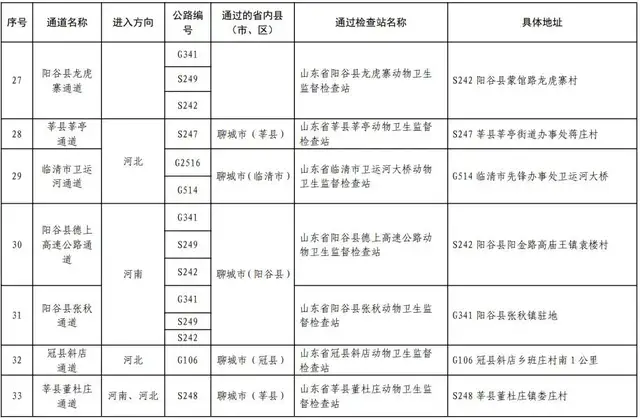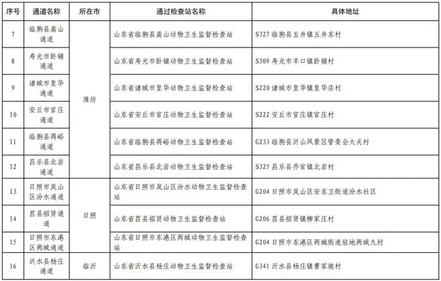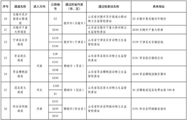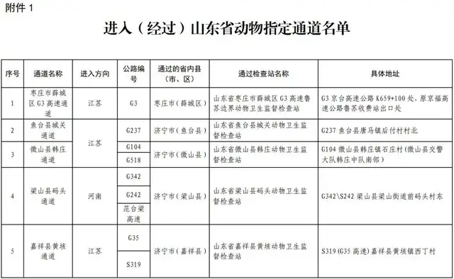 进入(经过)山东省动物指定通道名单(点击下图可放大)