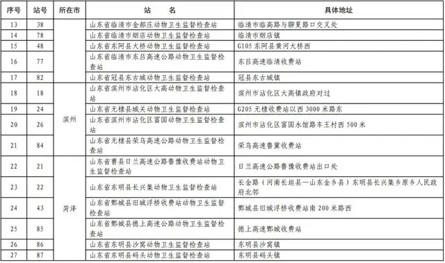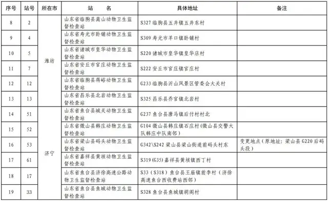 山东省动物卫生监督检查站名单(点击下图可放大)