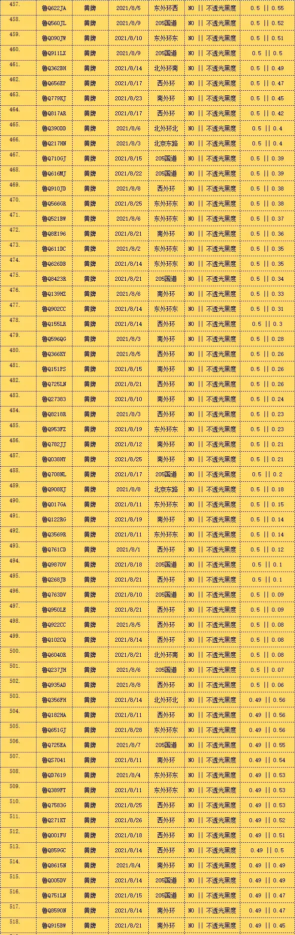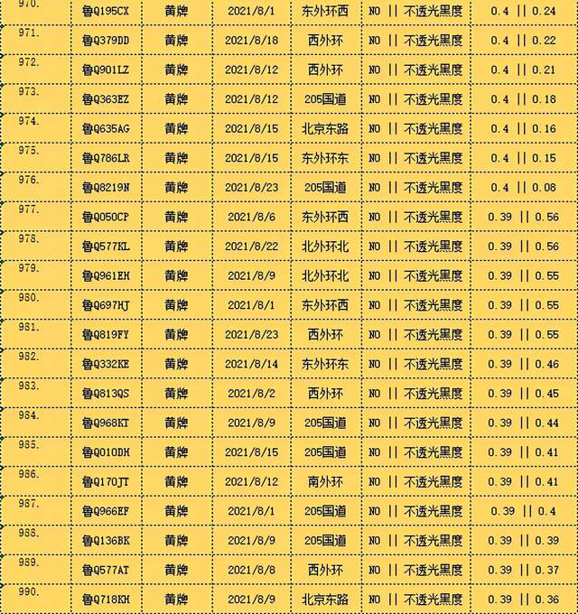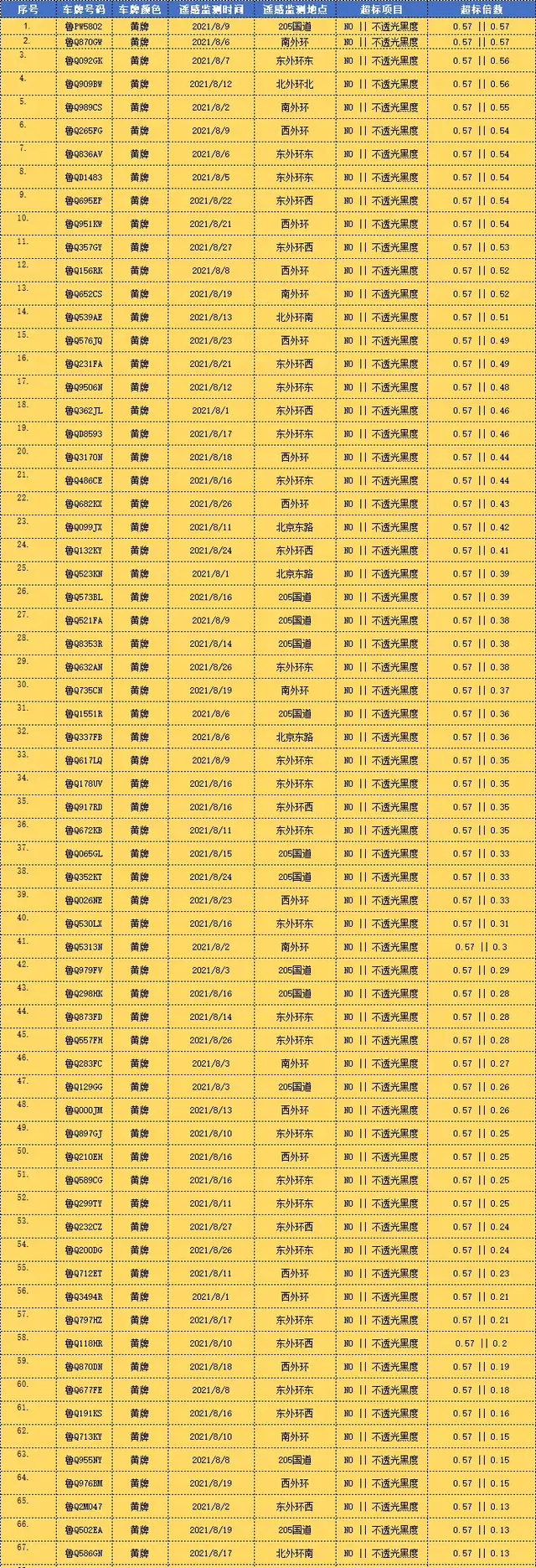 根据国家、省、市柴油货车污染治理攻坚方案的有关规定要求,现将2021年8月份遥感监测筛查超标车辆信息予以告知,请相关车主及时对所属车辆维修维护。