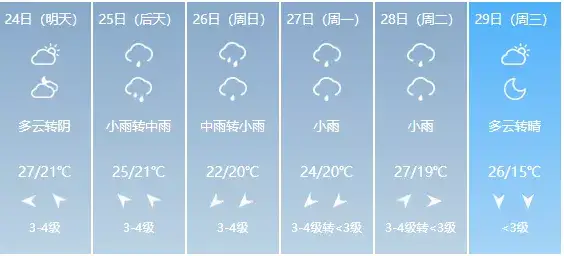 最高气温将回落到24℃左右