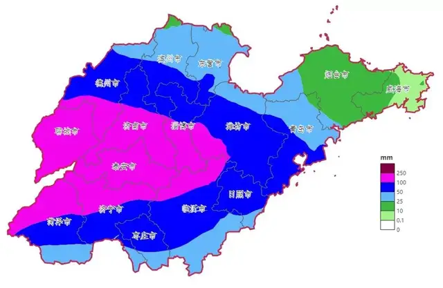 受副热带高压边缘暖湿气流影响,预计24日下午开始至27日,我省自西向东有一次明显降雨天气过程。全省累积平均降水量50~80毫米,其中,聊城、德州、济南、泰安、淄博、菏泽、济宁、枣庄、临沂、日照和潍坊南部地区70~100毫米局部150~200毫米,并伴有雷电,其他地区10~30毫米局部50~80毫米。