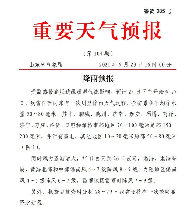 山东省气象台于9月23日16时