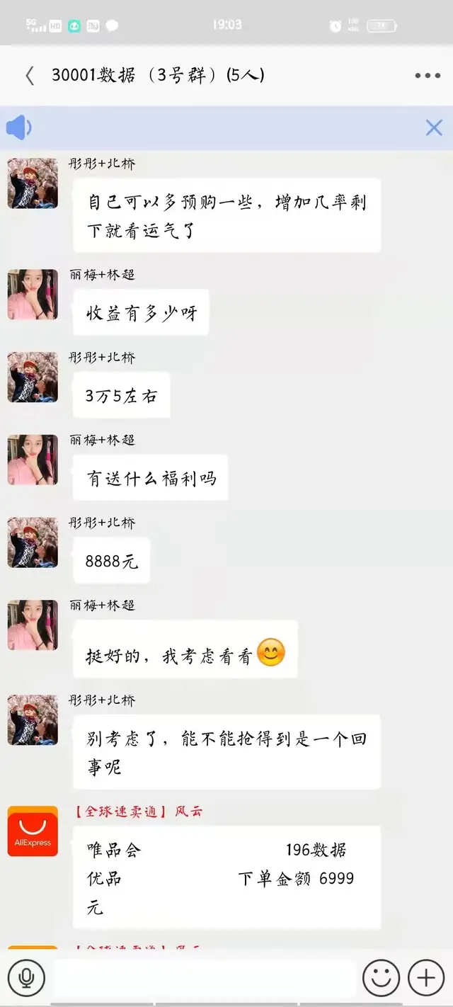 林女士在添加了订单员微信后,经过简单交流,订单员便把林女士拉进了一个五人的微信群,在群内林女士看到了其他成员发出的接单以及高回报相关信息。