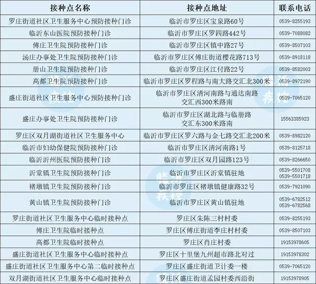 关注临沂疾控发布的接种点(门诊)信息。