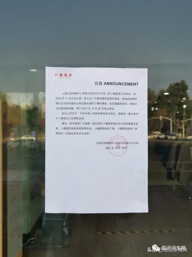 “自2019年2月开店以来,卜蜂莲花临沂人民广场店努力为广大顾客提供优质的商品、舒适的购物环境以及良好的服务,为周边群众提供了生活便利。经历数载的陪伴,现因经营战略调整,即将暂停营业,我们心怀万千不舍,不舍与每一位新老顾客讲出再见。同时万分欣喜地告诉大家,不久的将来我们将在新的环境为大家提供更加优质的服务,提供全产业链优质、新鲜的商品。” 在公告中,上海长发购物中心有限公司临沂分公司表示停止营业的原因为经营战略调整,新店正在筹备。
