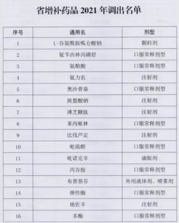 根据山东省医保局、省人社厅《关于做好我省基本医疗保险、工伤保险和生育保险药品目录省增补药品2021年调出工作的通知》,自2021年11月1日起,将115种省增补药品调出基本医疗保险、工伤保险和生育保险目录,届时这115种药品的费用我市基本医疗保险、工伤保险和生育保险基金不再报销。