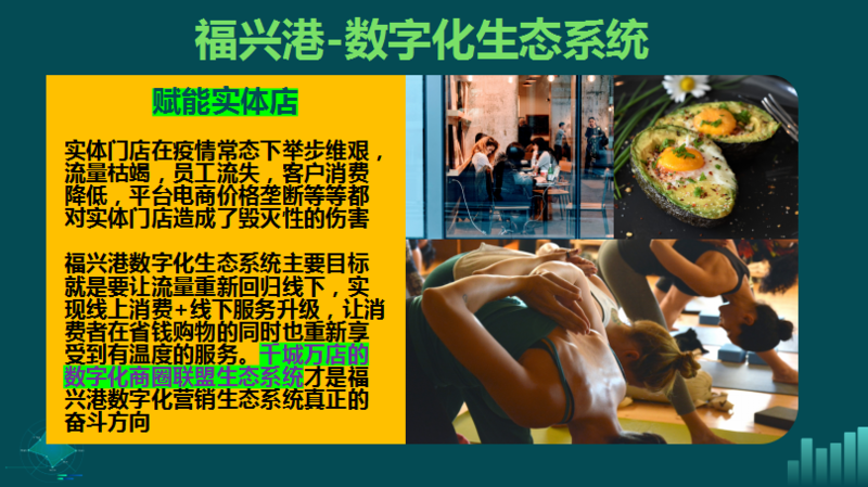 据了解,福兴港数字化生态系统以创新的SaaS系统应用工具和新消费引流营销模式,为中小微实体商家数字化转型升级提供一站式综合解决方案;免费帮扶有意愿合作的中小微企业和实体门店打造私域电商平台,应用引流工具和新消费模式,经营好私域流量。