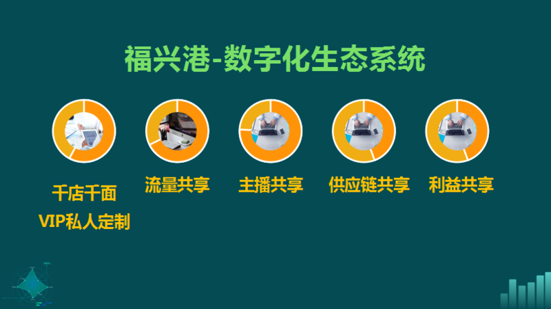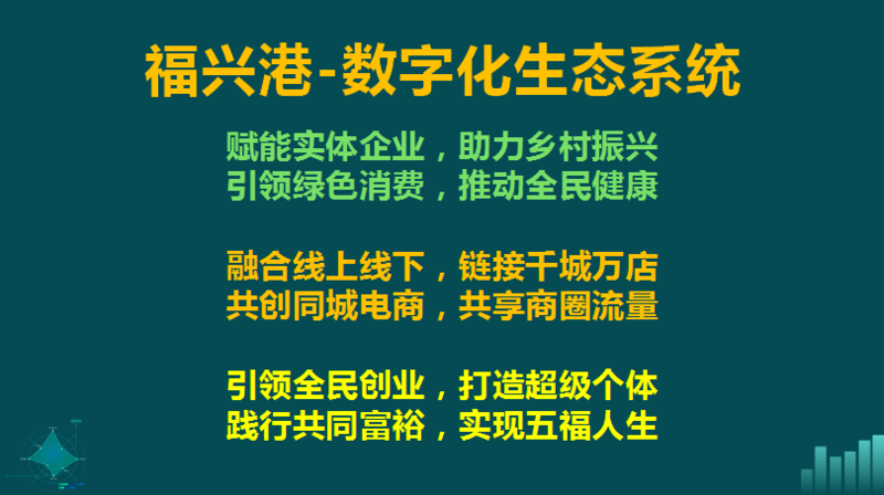 福兴港数字化生态系统最核心的价值是打造“数字化营销联盟+团队互联+城乡互联+百业互联”,旨在真正让所有参与者共融、共创、共享、共富,完美实现线上+线下融合互动的新消费模式,形成数字化营销生态联盟:千城万店商圈联盟利益共同体。