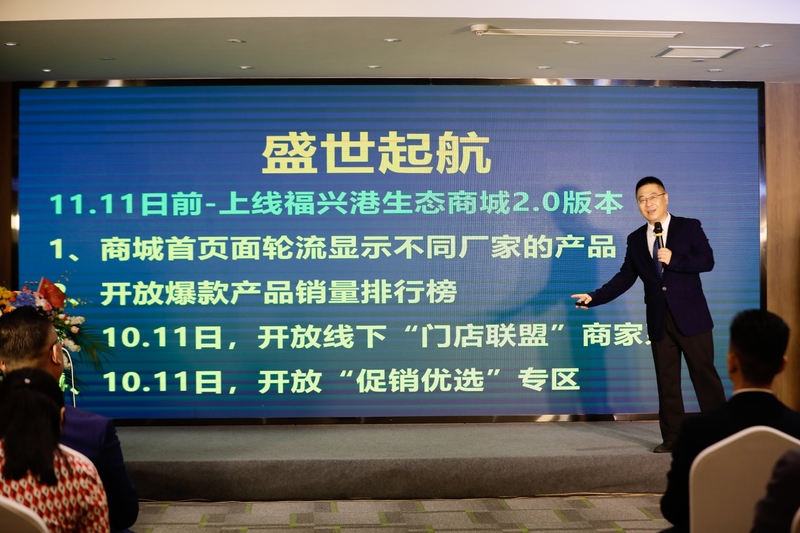 活动现场,福兴港创始发起人杨舰和福兴港创始发起人、福兴港福商学院首任院长海飞分别为大家介绍行动100-星火燎原和福兴港生态商城发展战略。记者从现场了解到,福兴港生态系统,经过近一年多的技术开发、调试,内测和公测,从无到有,未来从小到大,始终坚持赋能实体经济、促进消费升级和助力乡村振兴、推动共同富裕作为福兴港生态系统的初心。与合作伙伴、入驻企业互联互通、共建共创,共同促进新技术、新产业、新消费、新生态蓬勃发展。在经济寒冬中,福兴港生态系统也一直在求新求变,不断创新、创意,争取模式创新。2022年10月1日到2023年1月10日期间,全国招募139位运营合伙人,其中,19 位 联创合伙人,20位市级合伙人,100位区县合伙人。与大家携手共同稳步穿越经济周期,连接更多优秀资源,共建产业发展生态平台,为区域经济和产业发展贡献应有的力量。