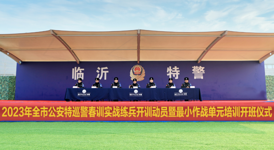 临沂在线讯 为巩固全警实战大练兵成果,持续深化“省市县一体化”训练机制,根据省厅特警总队《关于做好2023年第一季度重点训练全面启动春训实战练兵的通知》要求,2月7日上午,临沂特警支队举行全市公安特巡警春训实战练兵开训动员暨最小作战单元培训开班仪式,特警支队负责同志、各县区特巡警(治安巡防)大队代表参加。