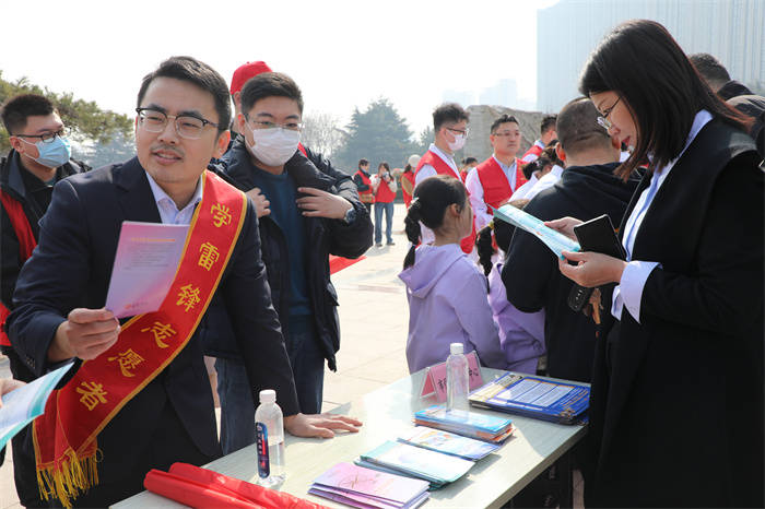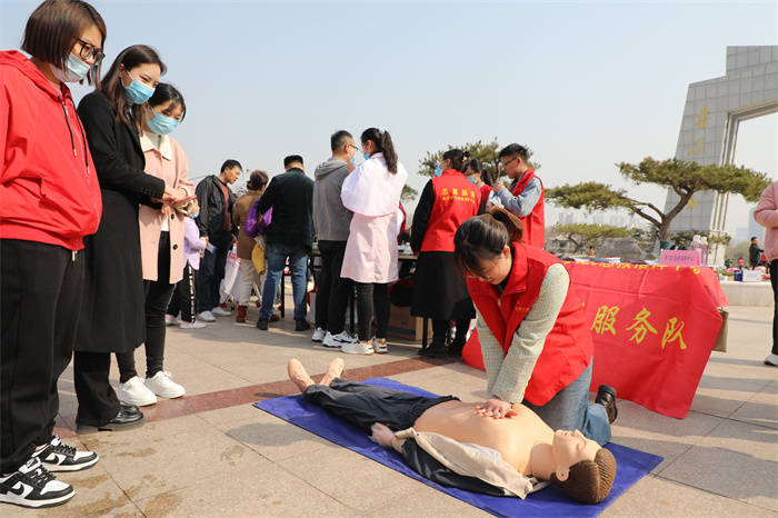 市公积金中心的青年志愿者向现场的市民宣传公积金缴存、提取、贷款业务办事流程,现场演示并邀请市民体验“爱山东”APP、临沂住房公积金微信公众号等线上办事渠道,发放业务明白纸等;市城管局的青年志愿者开展垃圾分类、城市管理领域普法宣传;市行政审批服务局青年志愿者讲解宣传开办企业政策大礼包、电子营业执照和电子档案同步领取、社会团体成立登记等与群众关联度较高的事项政策与办理流程。市中级人民法院青年志愿者重点开展了反诈防诈宣传、网上立案流程讲解;中国人民银行临沂市中心支行和交通银行临沂分行的青年志愿者分别开展了反洗钱和金融知识宣传活动;市中医医院和市120急救指挥中心的青年志愿者为市进行了急救知识宣传演示和健康义诊、测量血压、并向市民赠送了中药自制香囊。