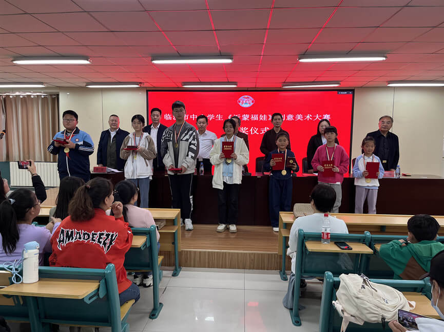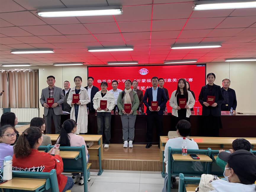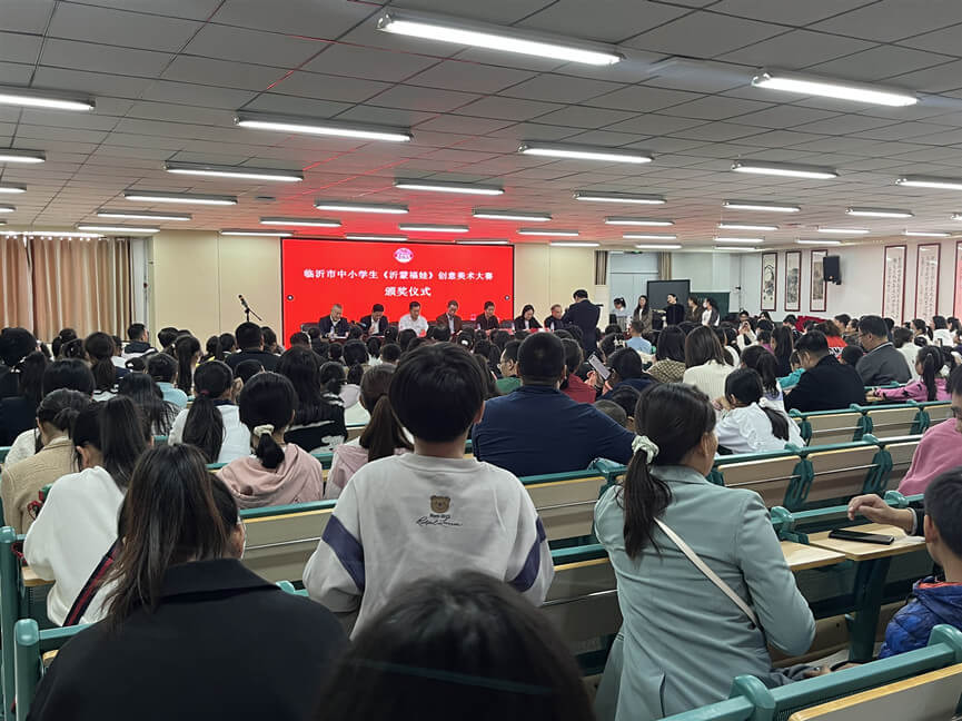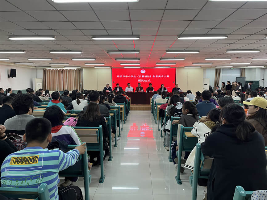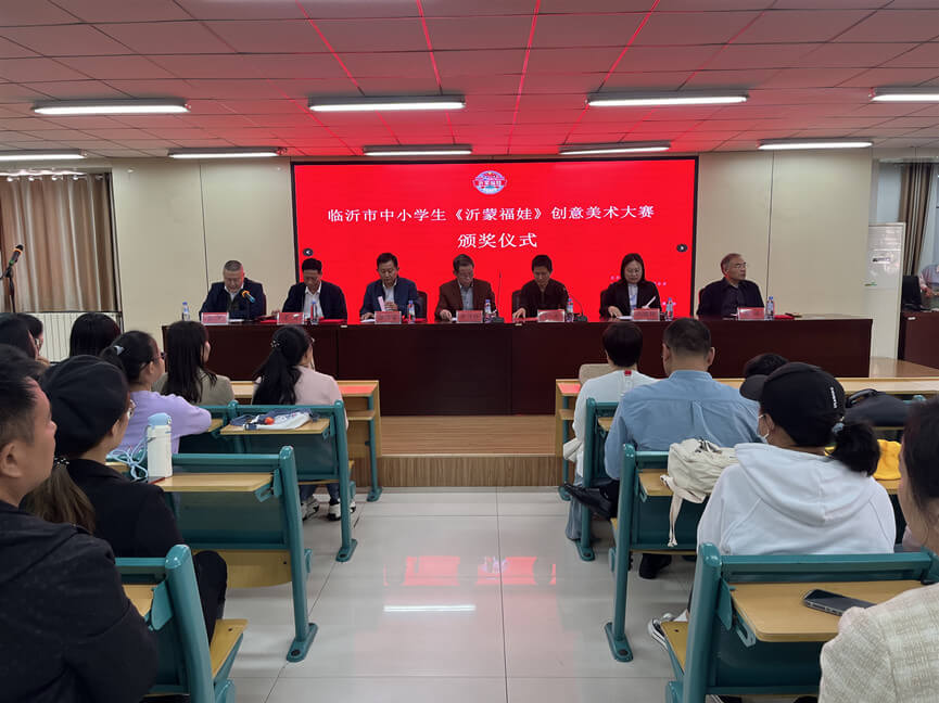 临沂在线讯 2023年10月21日上午10:30时,临沂市中学学生《沂蒙福娃》创意美术大赛颁奖仪式在临沂金盾小学礼堂举行。活动主办单位领导:临沂市文联党组成员副主席于泳同志、临沂市教育局党组成员副局长张国富同志、共青团临沂市委副书记尚晓玲同志、临沂市关工委副主任山东高等医专原党委书记卢廷祥同志;承协办单位领导:临沂市美术家协会副主席兼秘书长梁庸同志、大赛组委会主任临沂市收藏协会主席李军同志、临沂市作家协会原主席高振同志、山东智信集团董事长刘原麟同志、临沂在线总经理聂松泽同志、以及各县区获奖老师和同学代表、协办单位代表、媒体记者等百余人参加了颁奖活动。优秀辅导奖获得者王海珍老师和金奖获得者滕怀萱同学,作为获奖代表分别发了言。